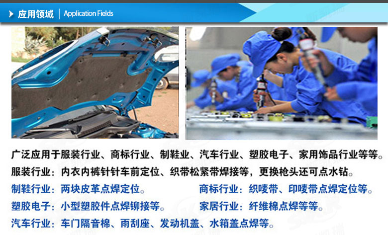 1.服裝行業(yè):超聲波手持焊接機可用于衣物上的商標制作,如T恤、褲子等。精準的點焊技術保證商標不易脫落,提高了服裝的品質和外觀。